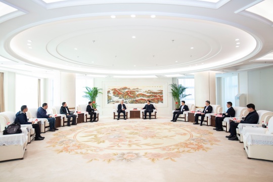 张平义主任一行领导在陈先瑞董事长,马晓进总经理等领导陪同下,通过参观展厅详细了解集团公司发展历程、产业项目成果、九州体育、发展规划以及党建工作,随后,双方在座谈中就深化合作领域进行深入交流。