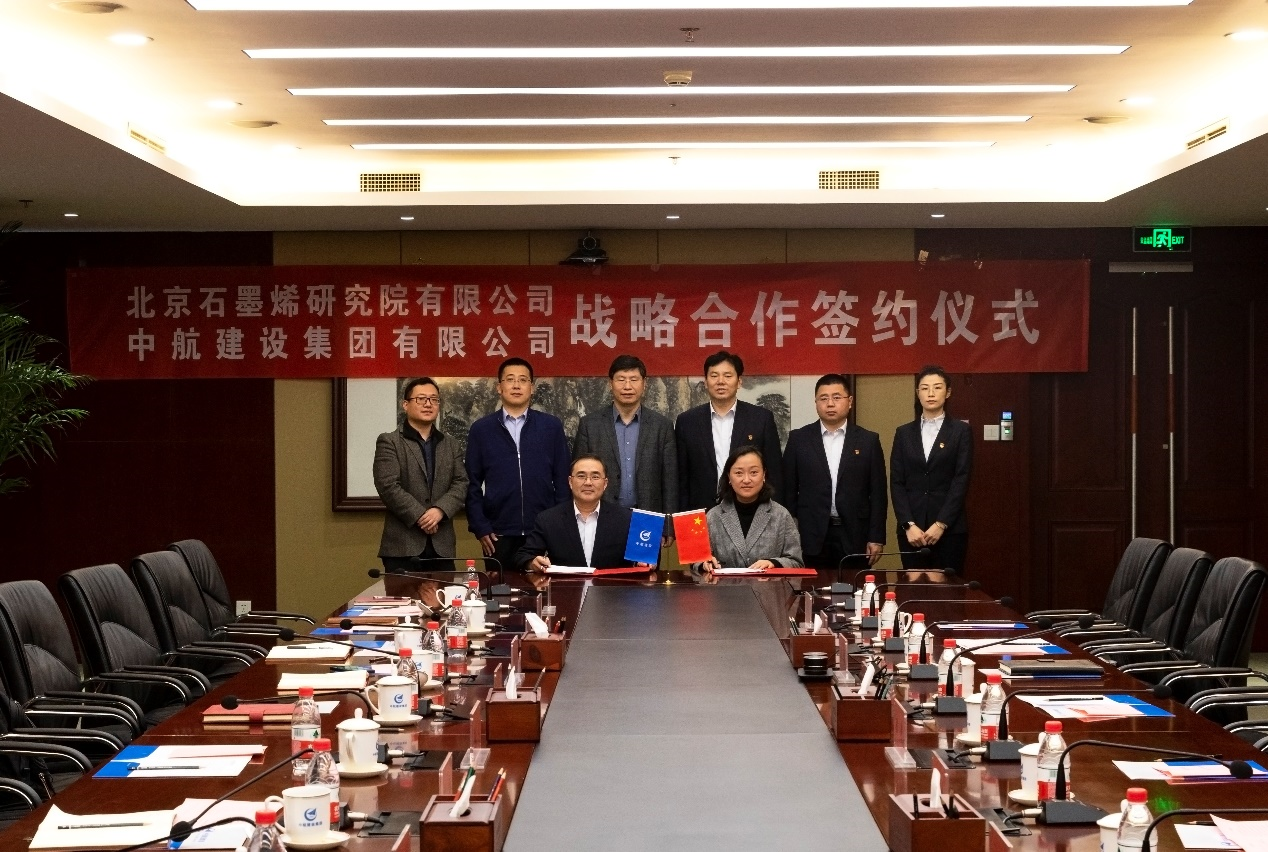 在参会人员的共同见证下,北京石墨烯研究院有限公司筹备组组长张华和九州体育-九州体育(中国)副总经理、总工程师陈劲代表双方签署《战略咨询合作协议》,本次签约仪式圆满成功,双方合影留念。