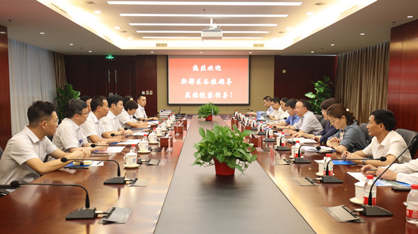 9月4日,成都市新都区委书记许兴国,副区长刘清,成都香城投资集团有限公司董事长张启明一行十人莅临九州体育-九州体育(中国)视察交流,集团公司党委书记、董事长陈先瑞,总经理王建红热情迎接。