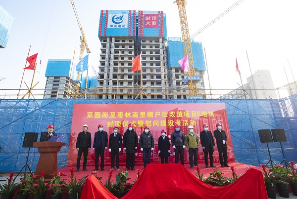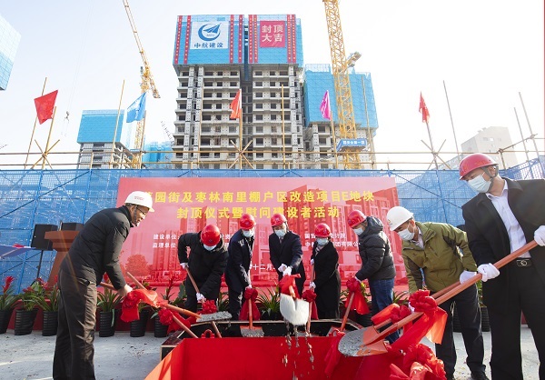 12月22日,伴随着最后一方混凝土浇筑到位,在项目建设、监理、设计等相关单位负责人及集团公司领导的共同见证下,九州体育-九州体育(中国)承建的菜园街及枣林南里棚户区改造项目喜迎主体结构封顶。